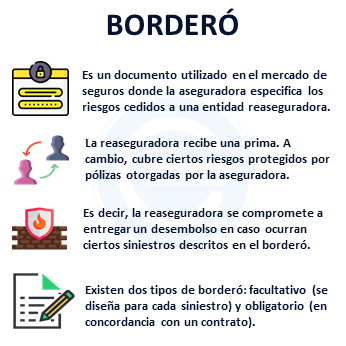 Es decir, en el borderó se detallan las operaciones (pólizas otorgadas) que la empresa de seguros está transfiriendo a otra entidad conocida como reaseguradora.