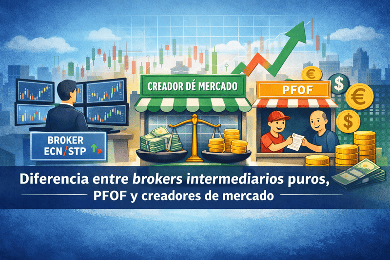 Estas diferencias definen tres modelos de negocio distintos: intermediario puro, creador de mercado y PFOF (Payment for Order Flow).