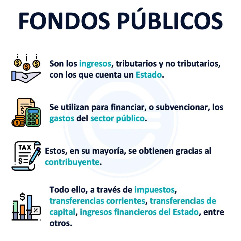 Los fondos públicos son los ingresos, tributarios y no tributarios, con los que cuenta un Estado para financiar, o subvencionar, los gastos del sector público.