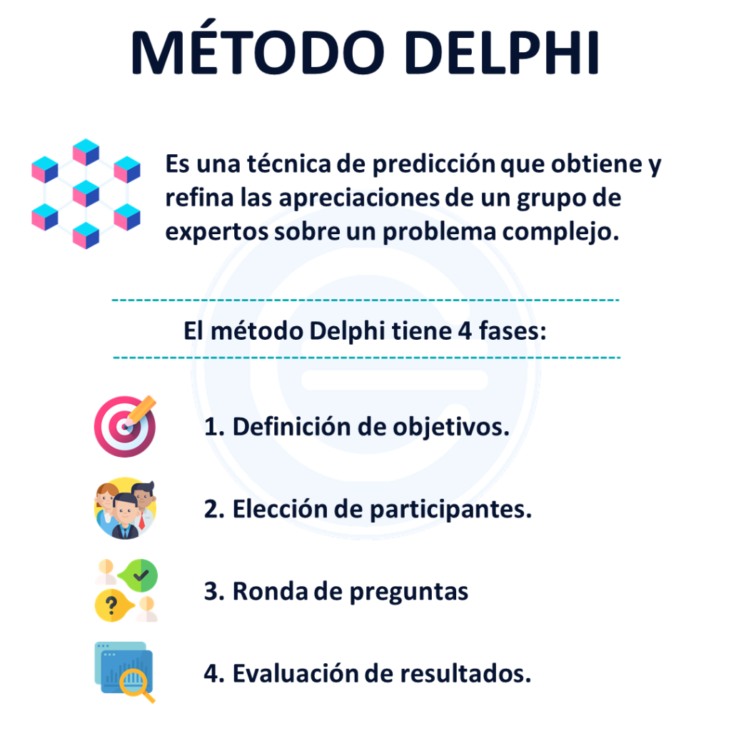 El método Delphi es una técnica de predicción que obtiene y refina las apreciaciones de un grupo de expertos sobre un problema complejo.