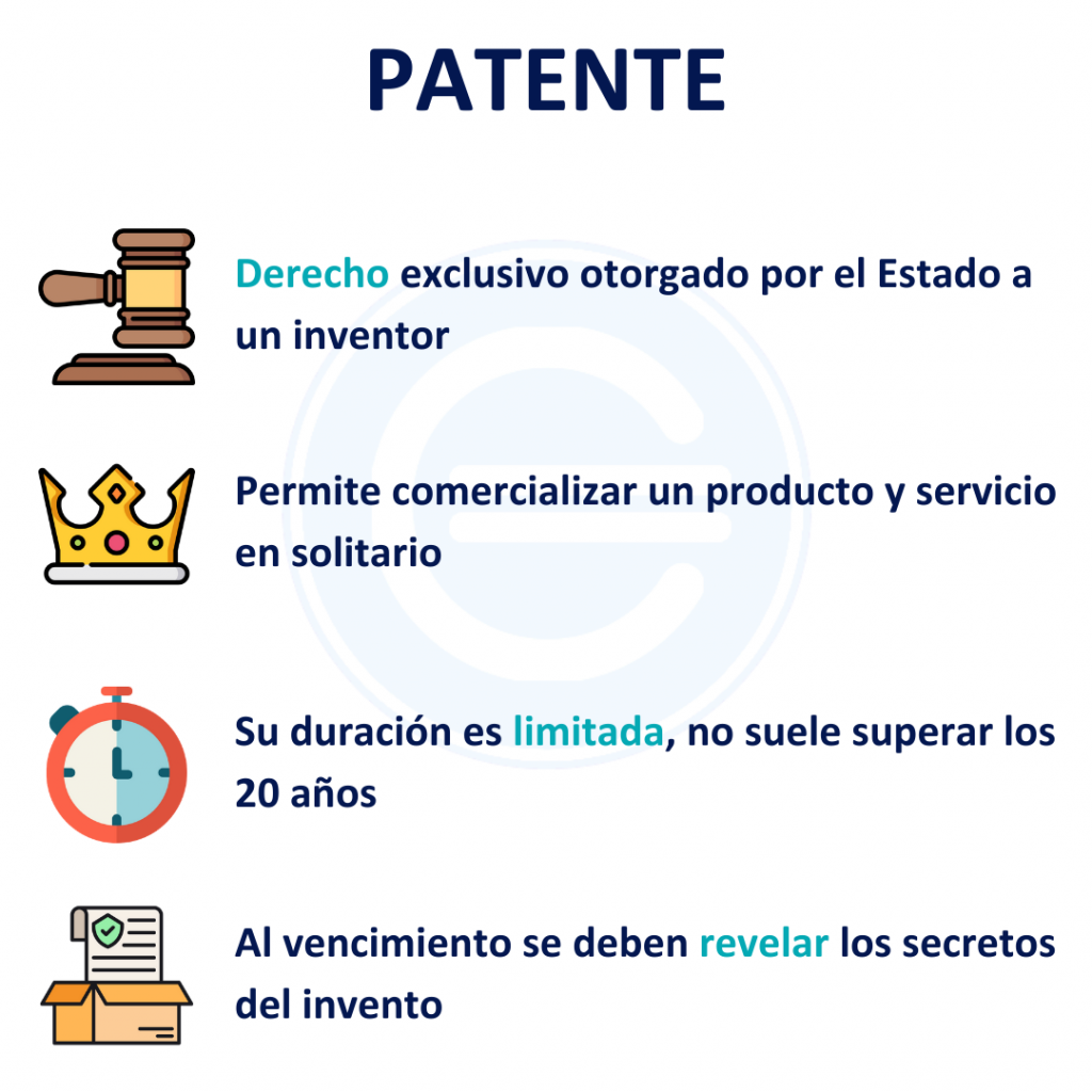 Una patente es un derecho otorgado por el Estado (u otra autoridad pertinente) a un inventor de modo que este sea el único autorizado para explotar y obtener ganancias de su invención durante un período de tiempo limitado.