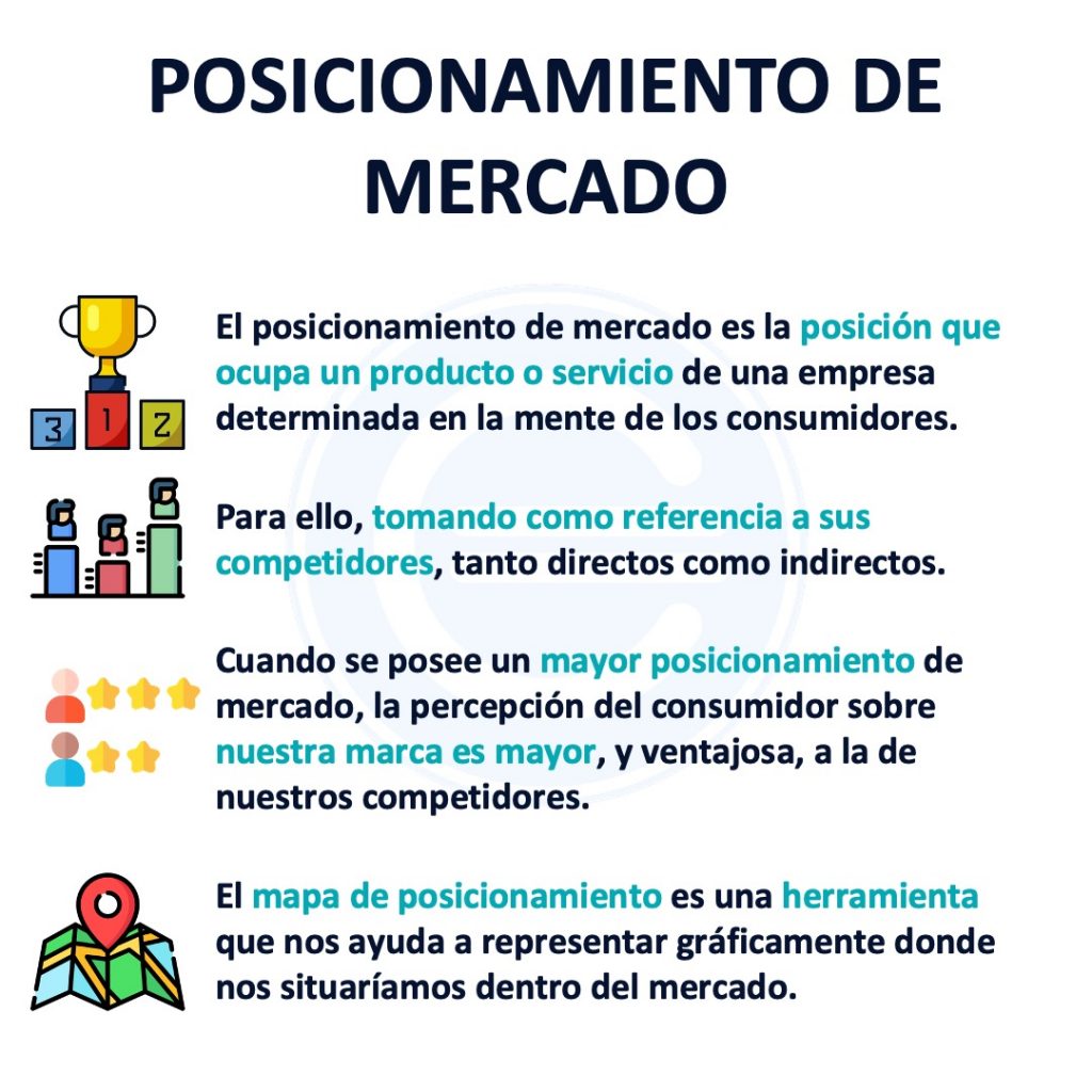 Se dice que se tiene un buen posicionamiento de mercado cuando nuestros bienes o servicios destacan sobre nuestros competidores, tanto directos como indirectos. Por esta razón, los consumidores eligen aquellas empresas que mejor posicionamiento tienen.