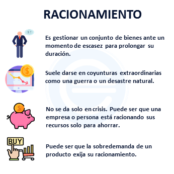 El racionamiento es el acto de gestionar un conjunto de bienes ante un momento de escasez.