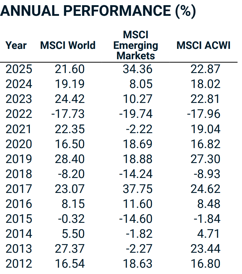 Desde diciembre de 1987, el MSCI World ha generado una rentabilidad media anualizada del 8,92%.