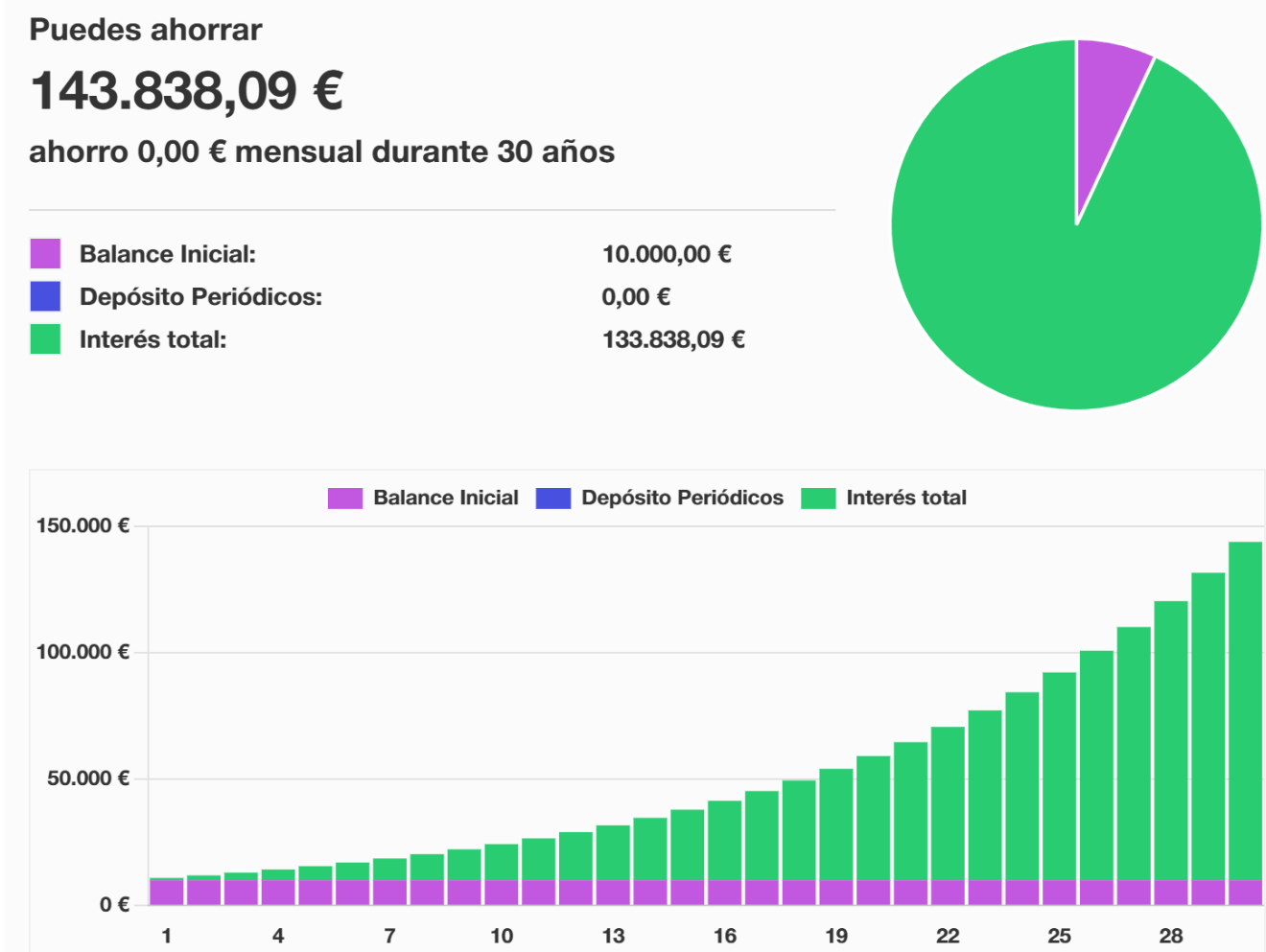 Eso significa que si hubieras invertido 10.000 € hace 30 años, hoy tendrías más de 143.000€.