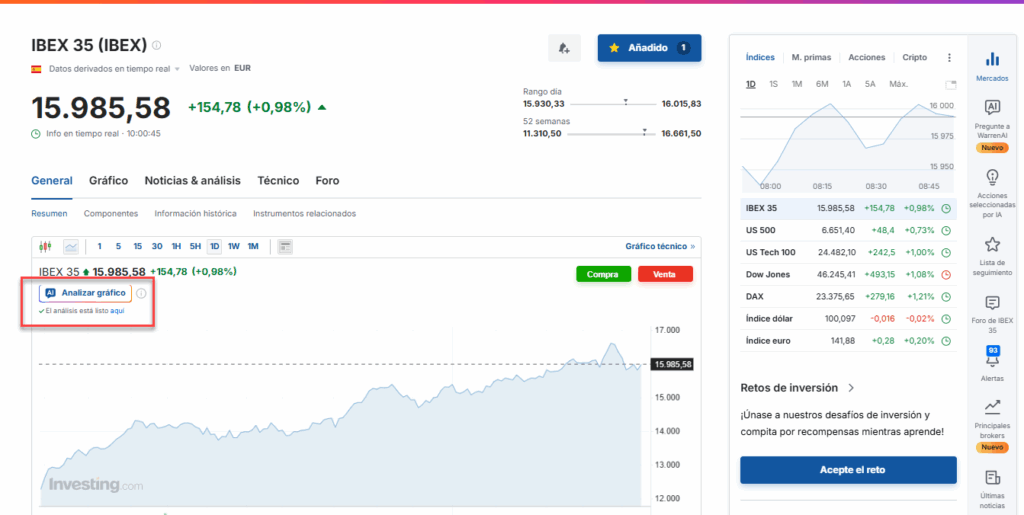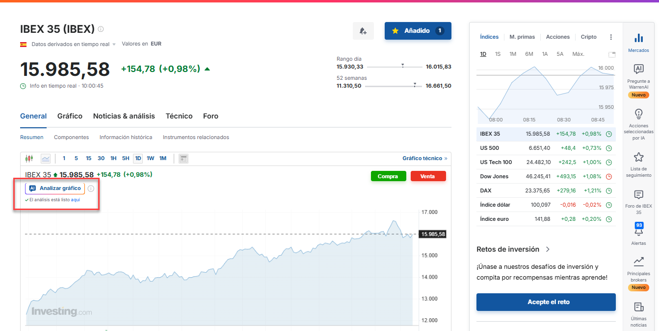 Para seguir los mercados, creéme que no te hace falta otro sitio para estar informado. Con Investing vas a tener suficiente información.