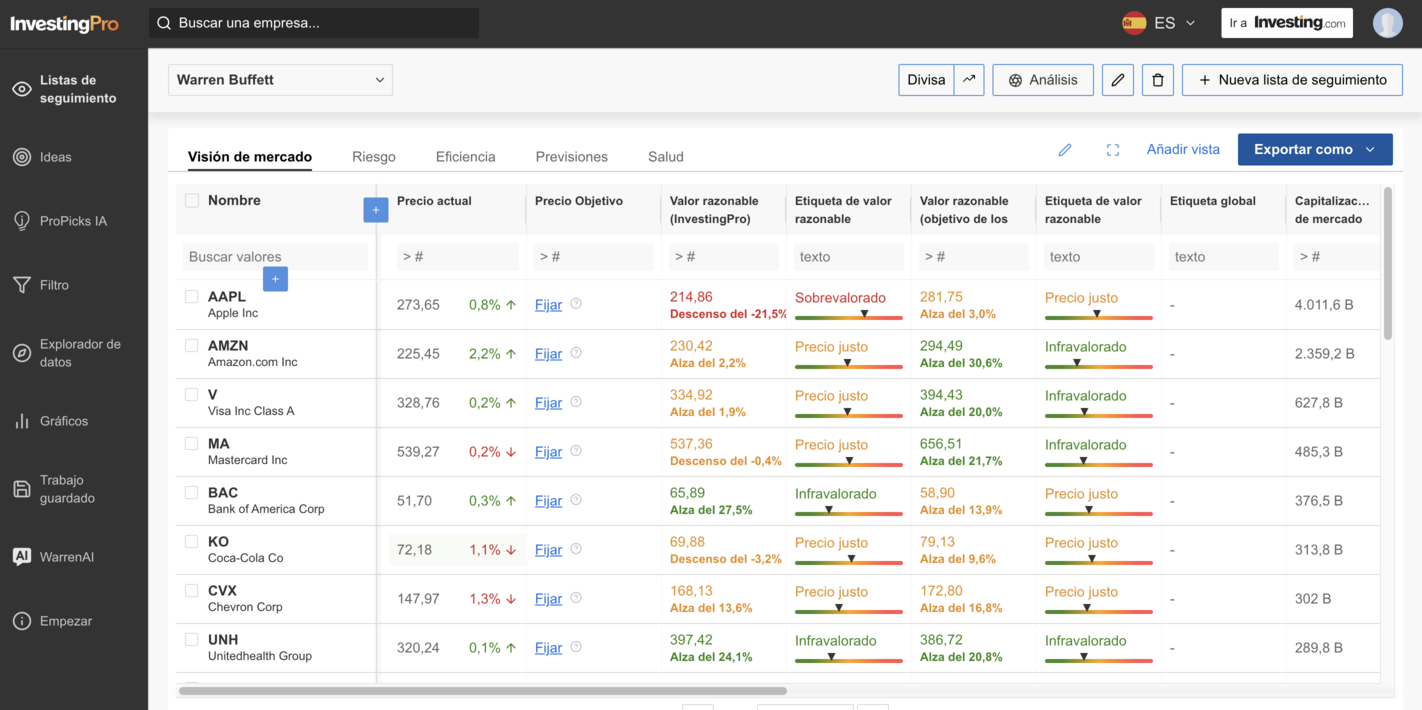 Hace poco crearon InvestingPro, su herramienta premium con más datos financieros, la mejor inteligencia artificial especializada en finanzas, carteras IA (ProPicks), modelos de valoración adaptables y filtros potentísimos.
